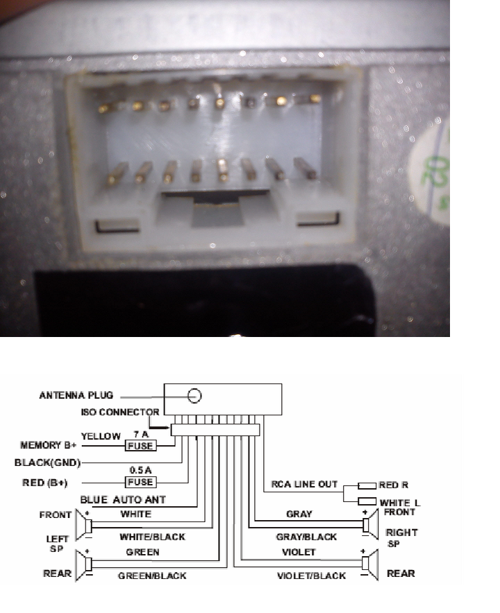 Przecież na schemacie jest wszystko ok. Sposób podłączenia opisany kolorami kabli i pokazana wtyczka do radia. Zwykłego użytkownika nie interesują numery pinów we wtyczce.