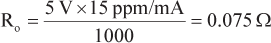 Większość scalonych stabilizatorów napięcia odniesienia nie podaje impedancji wyjściowej, a jedynie odchyłkę napięcia w funkcji poboru prądu jako ppm/mA. Układ ADR435 firmy Analog Devices może poszczycić się 15 ppm/mA, aby przeliczyć to na impedancję wejściową korzystamy z prostego wzoru: