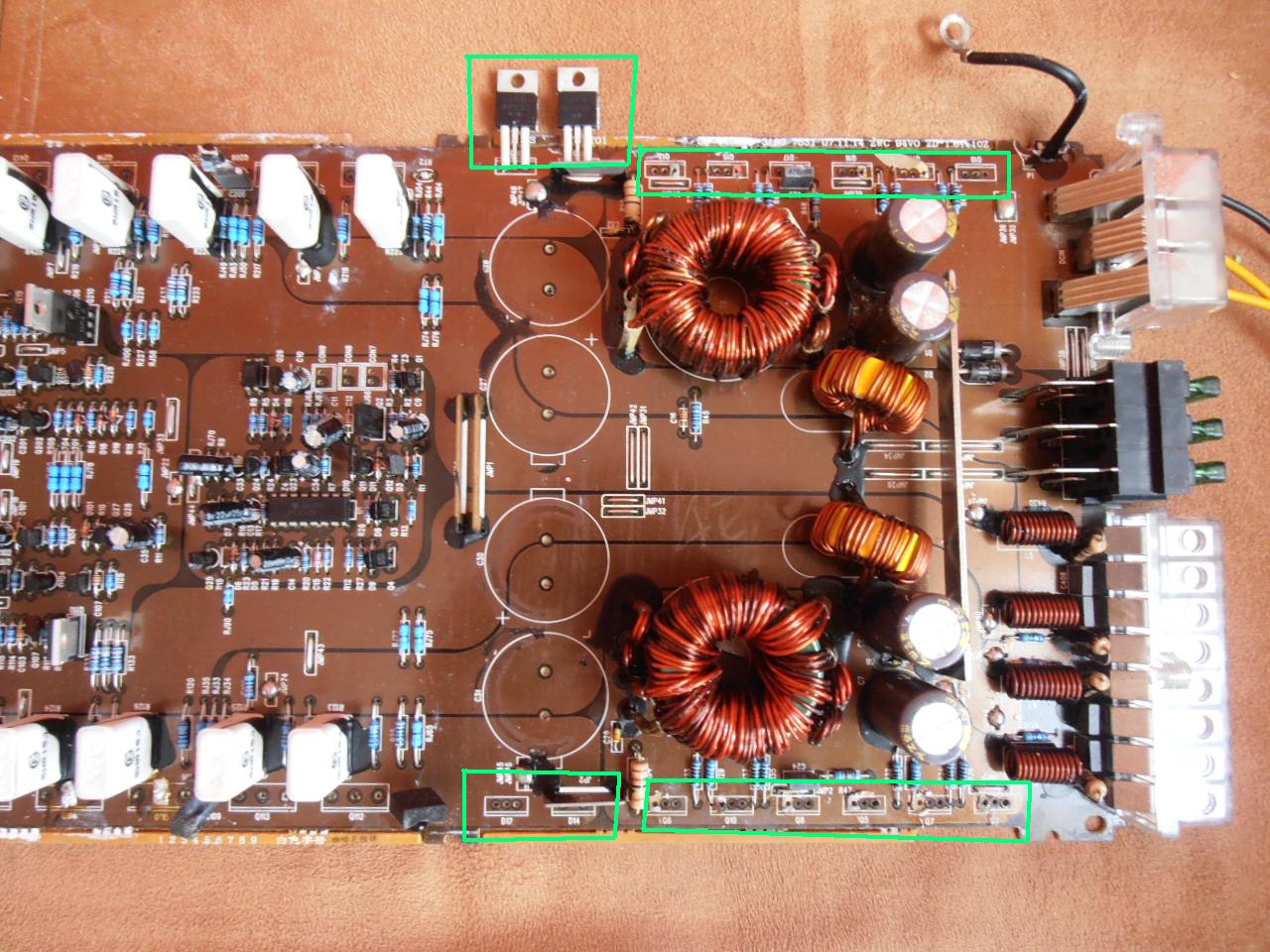 Witam. Mam małe pytanie. Wzmacniacz to Peying PY-4E76R. Padł jeden tranzystor w stopniu końcowym i 3 w przetwornicy, lecz wzmacniacz dalej nie rusza po wymianie(cały czas protect) Ktore elementy muszą być wlutowane w przetwornicy żeby ruszyła, a chcialem sprawdzić czy pierw pojawi się napięcie ok 35V- 40V. I Czy muszą one być z dwóch stron żeby zgasł protect i zaświeciła się zielona dioda.
