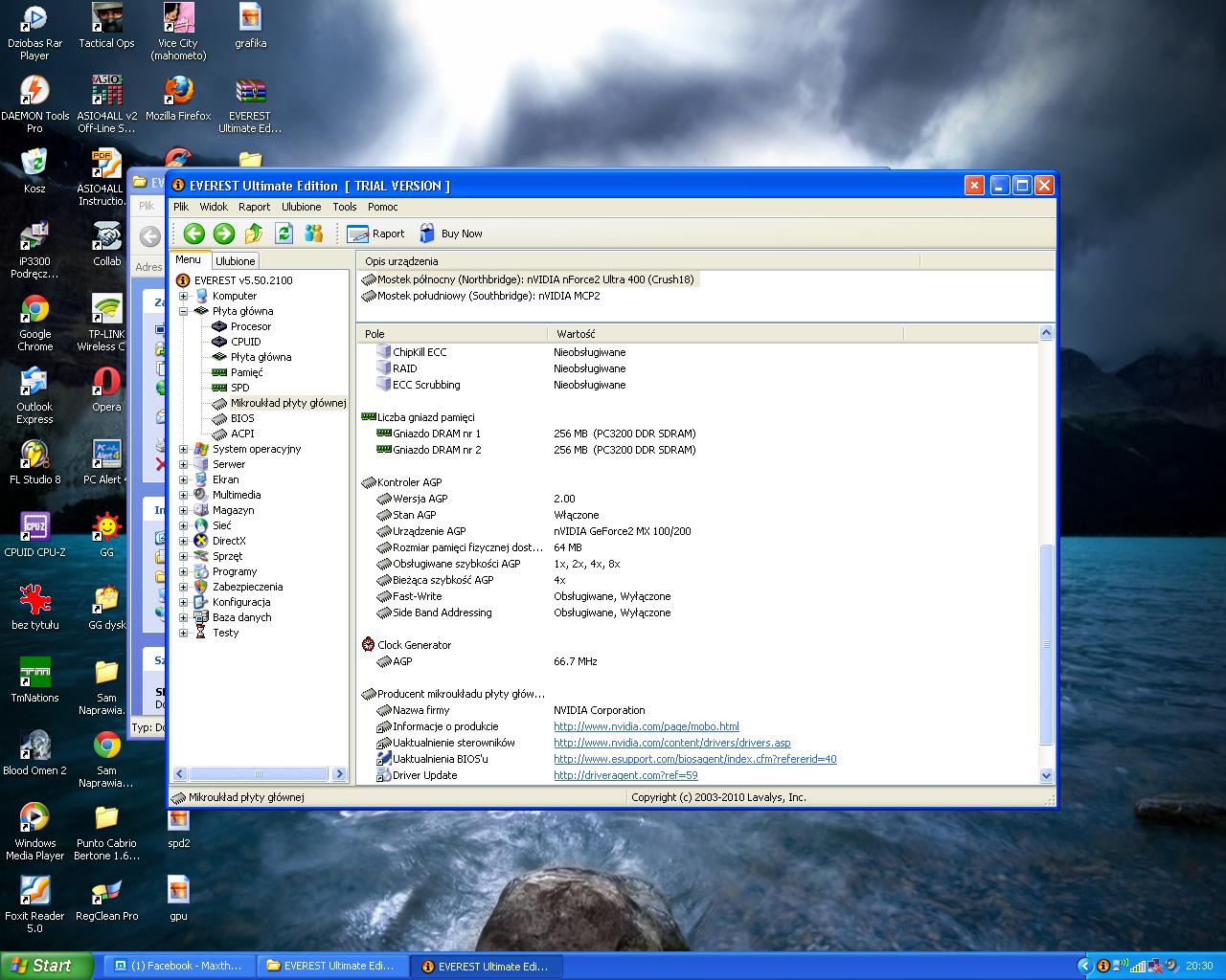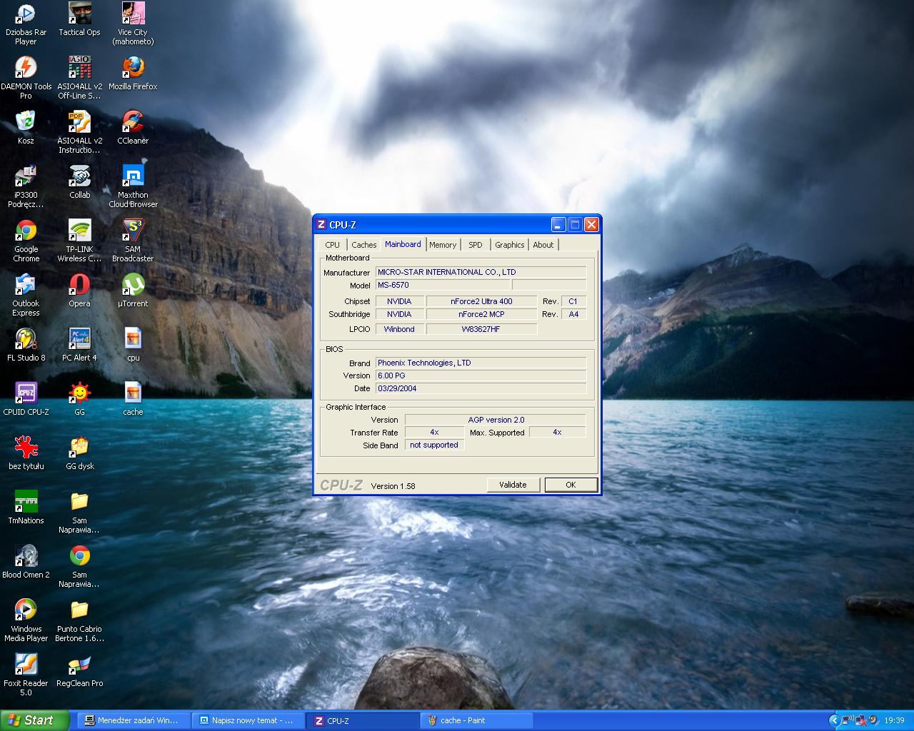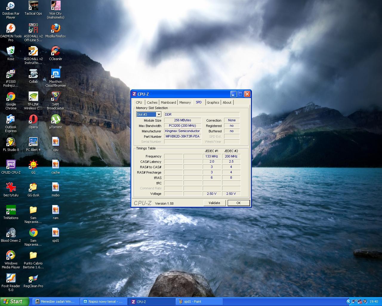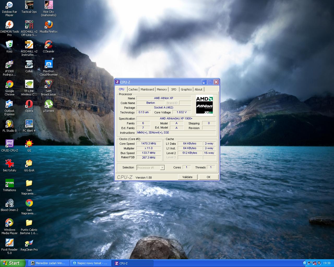 Witam, mam dość nietypowy problem, chciałbym sprawdzić jakie jest w rzeczywistości taktowanie mojego procesora oraz jego model. Standardowo(chyba?) w BIOSIE ma FSB na 100mhz i taktowanie 1.1ghz, ale wtedy w systemie nie pokazuje jego modelu tylko AMD Athlon XP. Po przestawieniu w Biosie FSB na 133 ma taktowanie 1.4ghz i pracuje o wiele lepiej i szybciej. Chciałbym się dowiedzieć jakim programem lub jak mogę sprawdzić rzeczywiste taktowanie tego procesora, ponieważ wydaje mi się, że nie działa on w pełni swoich możliwości? Zworkami na płycie FSB mam ustawione na short 133/166mhz, oraz chciałbym się dowiedzieć ile bezpiecznie mógłbym z niego wycisnąć? Dodam też, że parę razy zdarzyło się jak uruchomiłem komputer, że pokazywalo taktowanie 1.8ghz bez zmian jakichkolwiek w Biosie. Chciałbym się dowiedzieć, jak programowo sprawdzić rzeczywistą moc tego procesora, wiem, że najprostszym rozwiązaniem było by zdjąć chłodzenie i to sprawdzić, lecz to nie wchodzi w grę, ponieważ brak pasty termo-a nie chcę upalić procesora? Ostatnie moje pytanie, jakie najlepiej ustawić timingi, oraz szyny pamięci w Biosie, aby pracowały one sprawniej, oraz czy da rade jakoś usprawnić moją grafike? Wiem, że zabytek, ale aktualnie niestety nie będę mieć nic lepszego