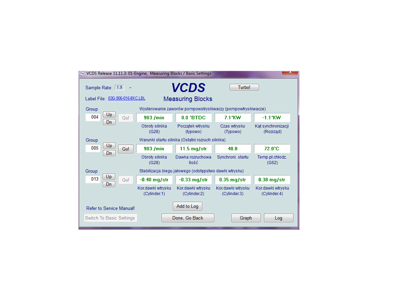 Po odpaleniu zimnego silnika odczyt wygląda następująco: