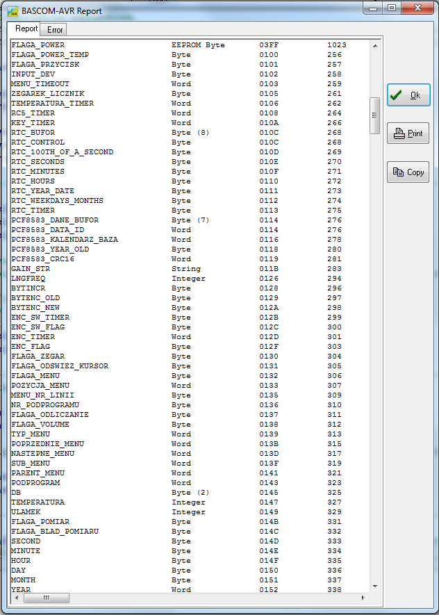 W celu wygodnego debugowania softu (bez tworzenia celowych pułapek, ponownej kompilacji kodu i programowania uP) chciałbym zrealizować komendę debug, która zwróci wartość zmiennej o którą pytam: debug [nazwa zmiennej].