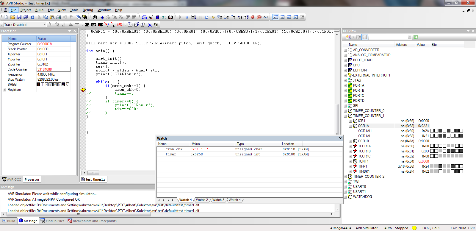 Mam dziwny problem z konfiguracją timer1 w atmedze644pa w trybie CTC.