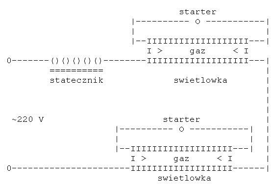 #4 1318476 15 Mar 2005 19:53 Dogma Dogma Poziom 15 Pomocny post? (0) #4 1318476 15 Mar 2005 19:53 To jest chyba przykład jak narysować schemat w ASCII, bo układ zaslania 2 swietlówek jest standartowy. -------------- Pozdrawiam