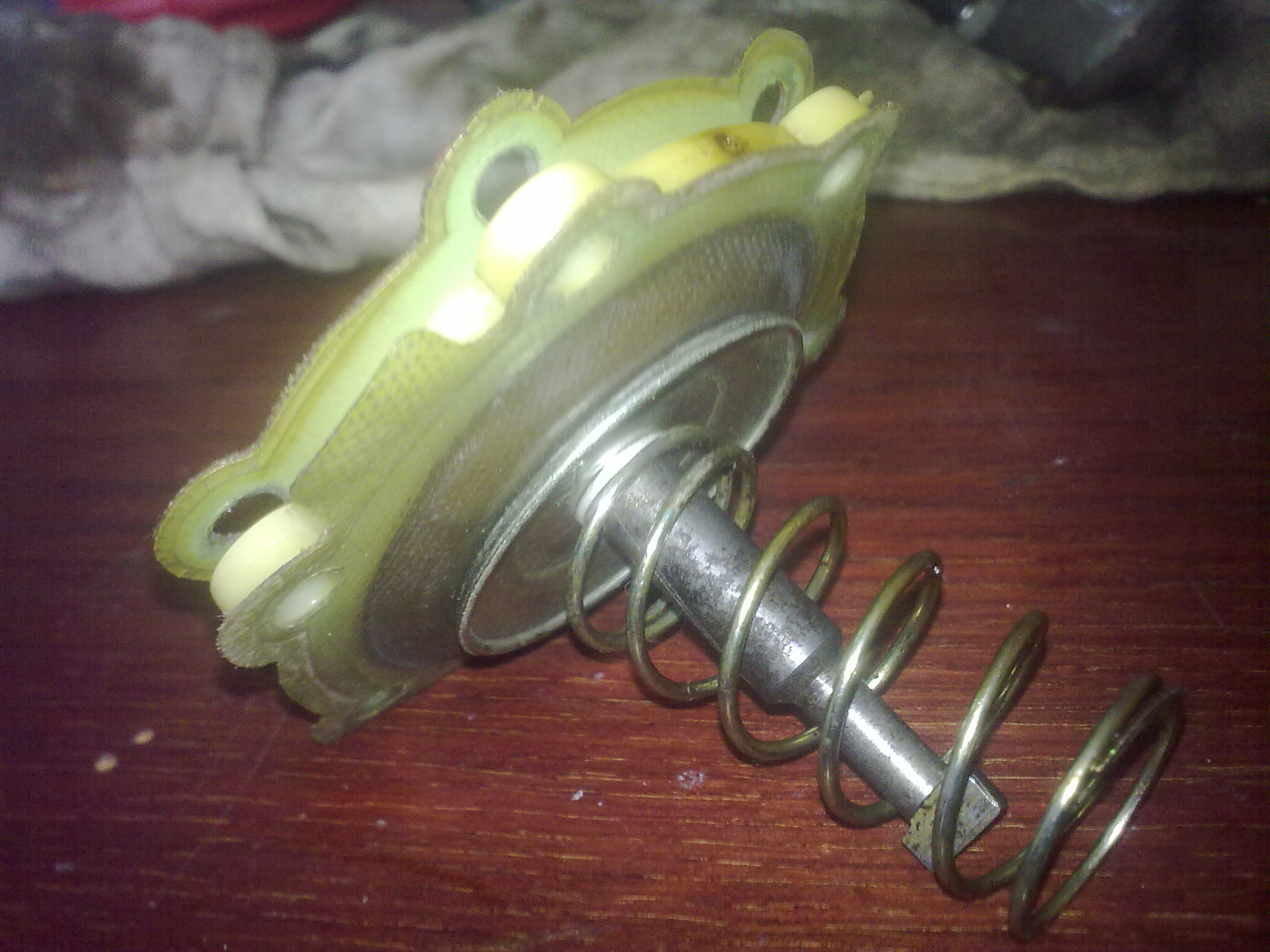 Tutaj przyznam ci rację. Ale przepony samej raczej nie dostane (poszukam jeszcze). Cała pompa wprawdzie też nie jest zabójczo droga (używana 30,40 zł.) ale wolałbym mimo wszystko nie wydawać tych 40 zł. Jeśliby się okazało że z pompą jest wszystko w porządku a zawiodło coś innego. Tak więc właśnie potrzebuje pewności ,że mam dobrze złożoną przeponę. Bo jak patrzyłem to reszta części mojej pompy jest w porządku. Tzn. zaworki w korpusie szczelnie przywierają i dobrze pracują w obie strony. W samym korpusie z filtrem jest czyściutko. Mechanizm przekazujący energię z popychacza na membranę również chodzi lekko i prawidłowo wraca na miejsce po puszczeniu.( Tutaj mam wątpliwość ponieważ faktycznie chodzi lekko naciskając go kciukiem bez membrany. po założeniu membrany chodzi już ciężej ,a po skręceniu całej pompy nie jestem w stanie go już nacisnąć. Ale wydaje mi się to normalne akurat.