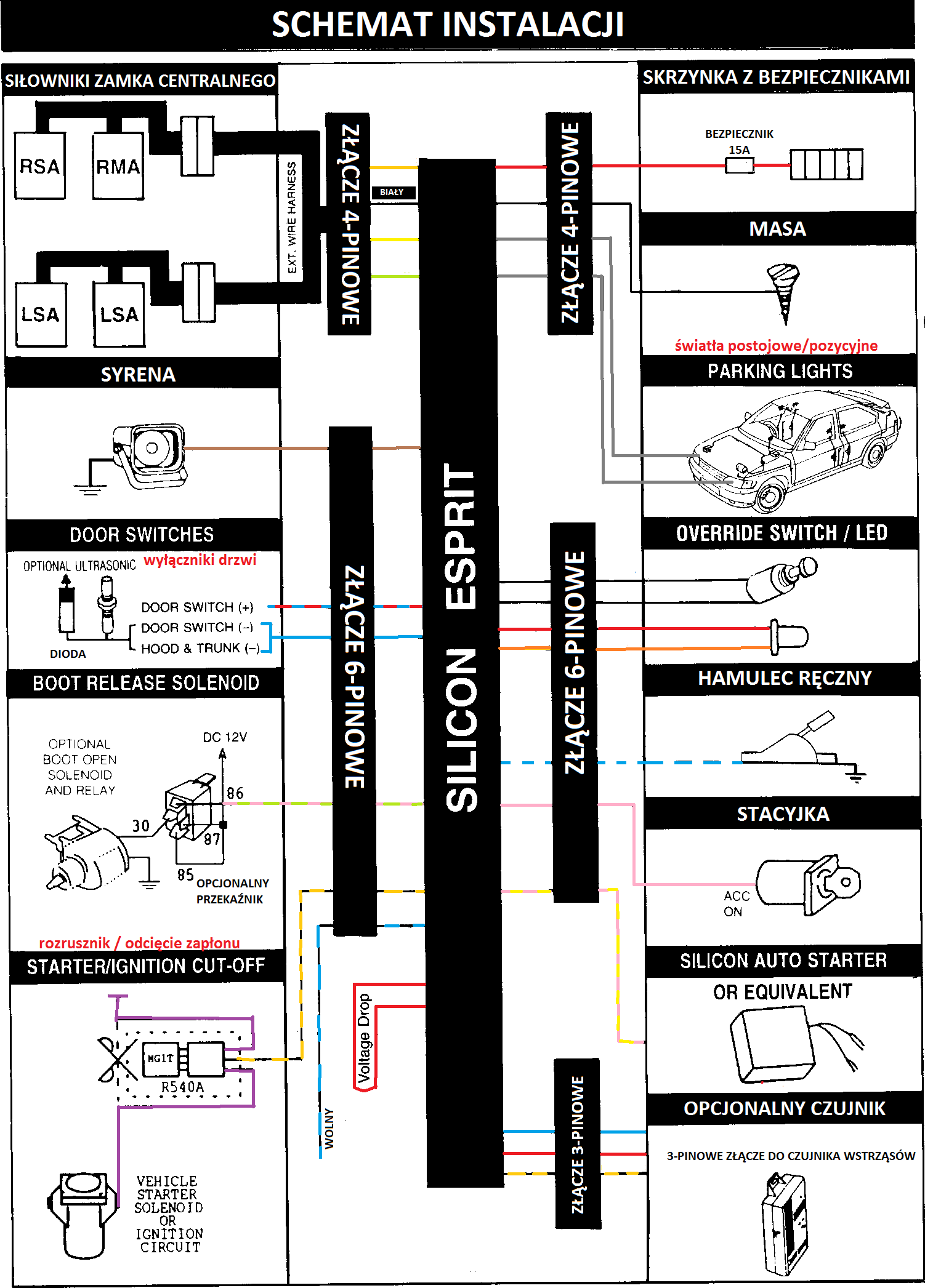 Dostałem od znajomego alarm Silicon esprit, lecz mam kilka pytań co do podłączenia.
