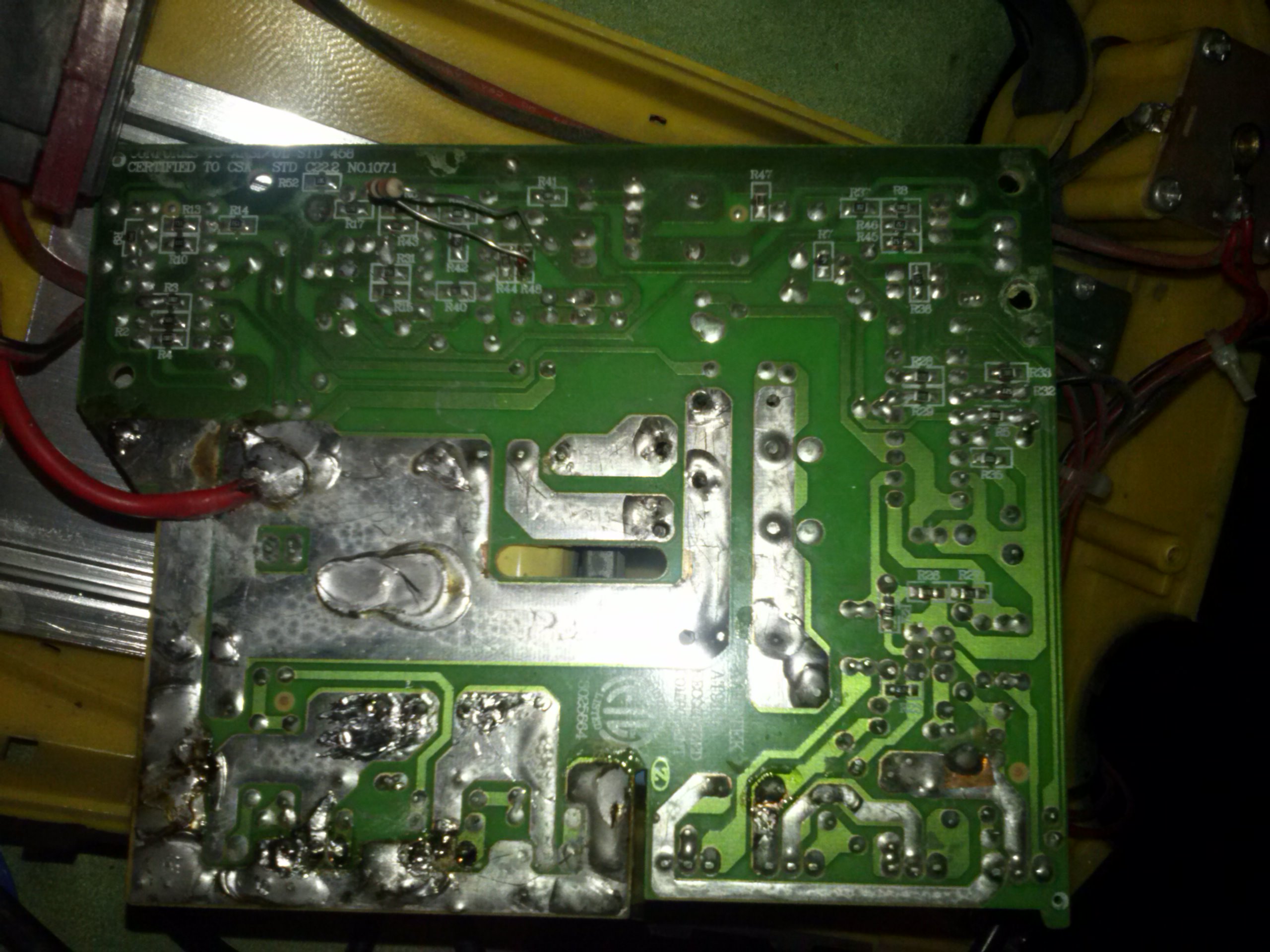 Ja bym zaczął od sprawdzenia zasilania układów scalonych,zabezpieczenia LM324 jak dobrze widzę na 4 nodze zasilanie 12V ,KA7500 12 noga i KA 3525 15 nogę jeżeli tam nie ma napięcia to sterownik nie jest zasilany.Czy te dwa tranzystory na wejściu 12V Kolega sprawdził ?