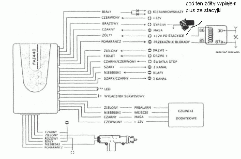 2. drugi problem dotyczy przekaznika od blokady zaplonu, zdaje mi sie ze podlaczylem dobrze ( podlaczylem tak jak na schemacie w zalaczniku) i gdy alarm wlaczony to po wlaczeniu stacyjki, gdy pojawi sie na niej prad alarm sie wlacza czyli dobrze ale dalej gdy przekrece to nie odcina rozrusznika i mozna autko odpalic, czy to wina zlego podlaczenia czy tez mozliwe ze przekaznik jest popsuty??