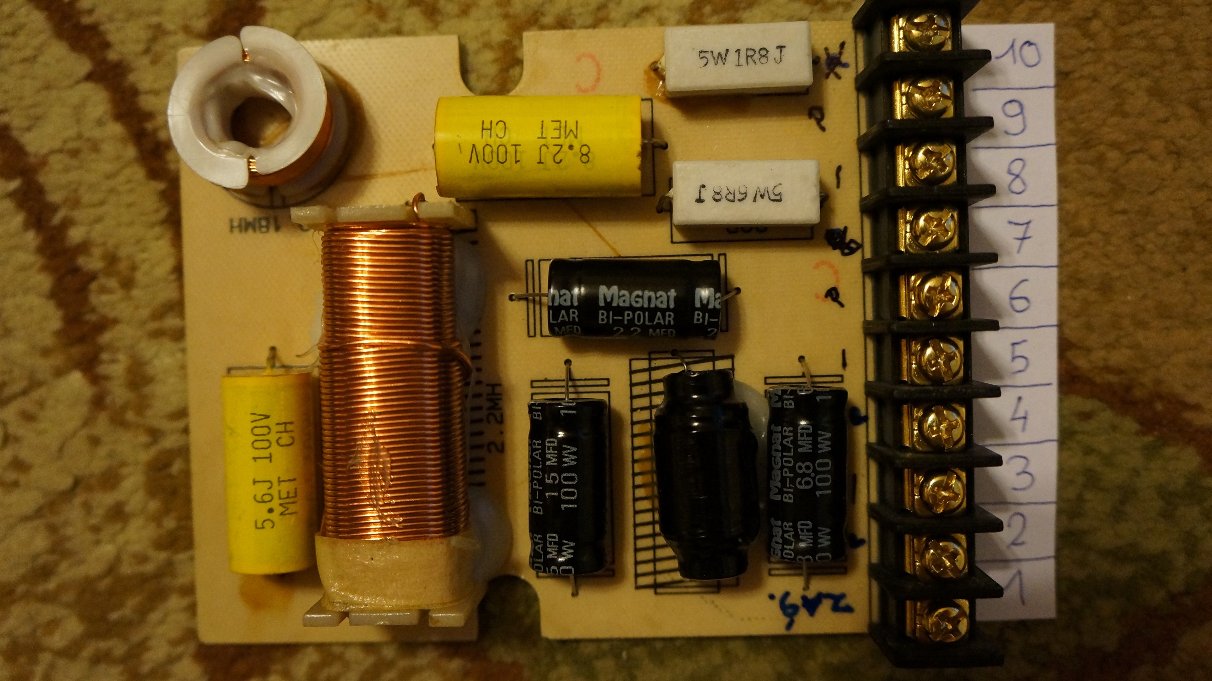 Witam. Mam prośbę odnośnie zwrotnicy zestawu głośników firmy : Magnat Pro 320. Jak podłączyć do niej zestaw głośników który był w zestawie ( 3 sztuki:bas, średni i wysoki ton ?) Nie pamiętam jak ta zwrotnica była podłączona z tymi głośnikami. Po prostu na szybko było wszystko demontowane z samochodu i teraz mam kłopot z jej podłączeniem żeby wszystko prawidłowo działało. Jest aż 10 odczepów do podłączenia i teraz nie wiem. Jeśli ktoś mógł by mi pomóc w tej sprawie był bym wdzięczny. Pozdrawiam Zwrotnica zestawu głośnikowego: Magnat Pro 320 Art.-Nr. 114 320 W