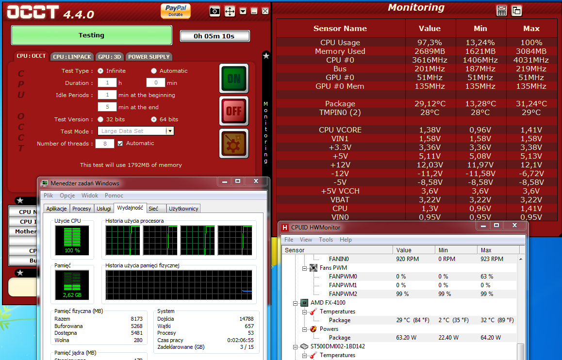 dodam też ze jak mierzyłem ile bedzie procesor mieć stopni przy 100% obciazenie mialem włączonego jdowloadera i opera;>