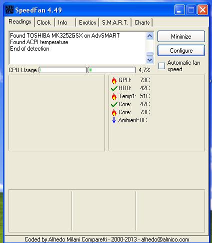 Witam. Moim problemem jest nagły spadek fps. Kiedy gram mam 30fps (wszystkie ustawienia grafiki są na najniższym poziomie) Jak gram z jakieś 10minut wentylator zaczyna mocniej dmuchać i wtedy fps'y spadają i są od 5-10. Jak gre zminimalizuję i wiatrak się uspokoi to gre maksymalizuje i przez chwile wszystko działa poprawnie. Problem zaczął się wczoraj.