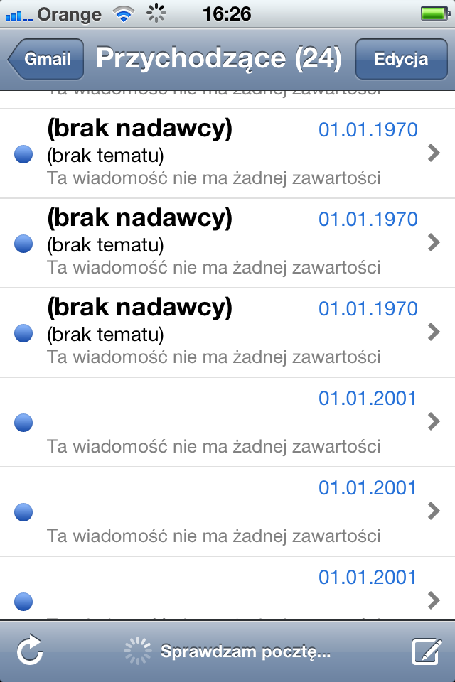Mam od pewnego czasu problem z odbiorem maili. Oprócz zwykłych dostaje maile puste, bez treści, tematu i zawartości. Mam pocztę skonfigurowaną w gmailu i interii.