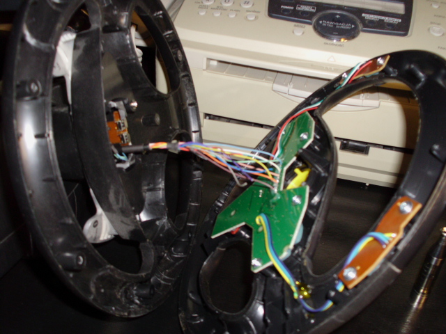Kierownica działa tylko wszystkie przyciski padły, po rozebraniu już widać dlaczego.