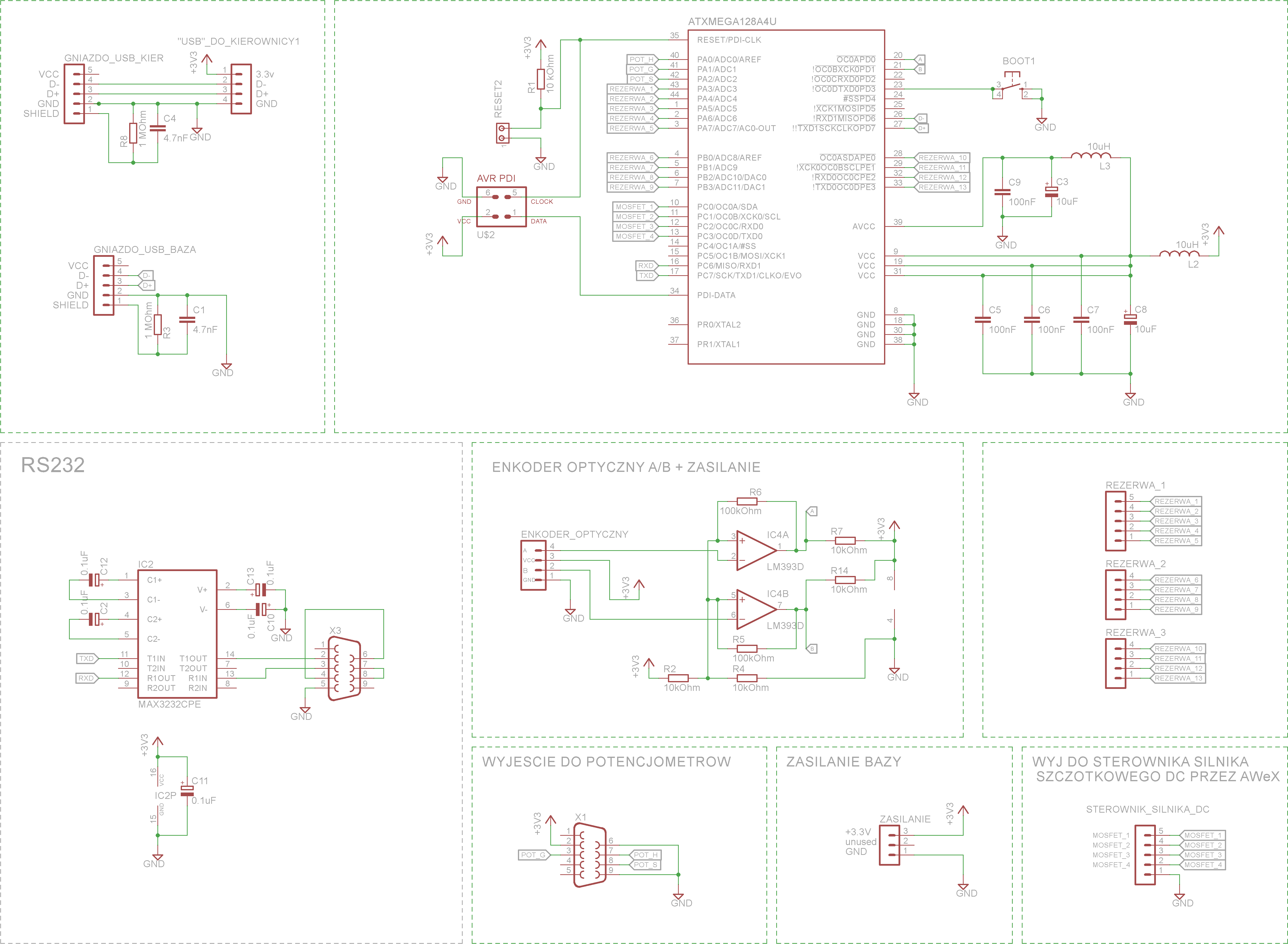 Proszę o sprawdzenie czy poprawnie podłączyłem wszystkie "podzespoły" tj. PWM+USB+ENKODER+RS232+PROGRAMATOR(złącze PDI, przycisk do bootowania) do uC ATxmegi.
