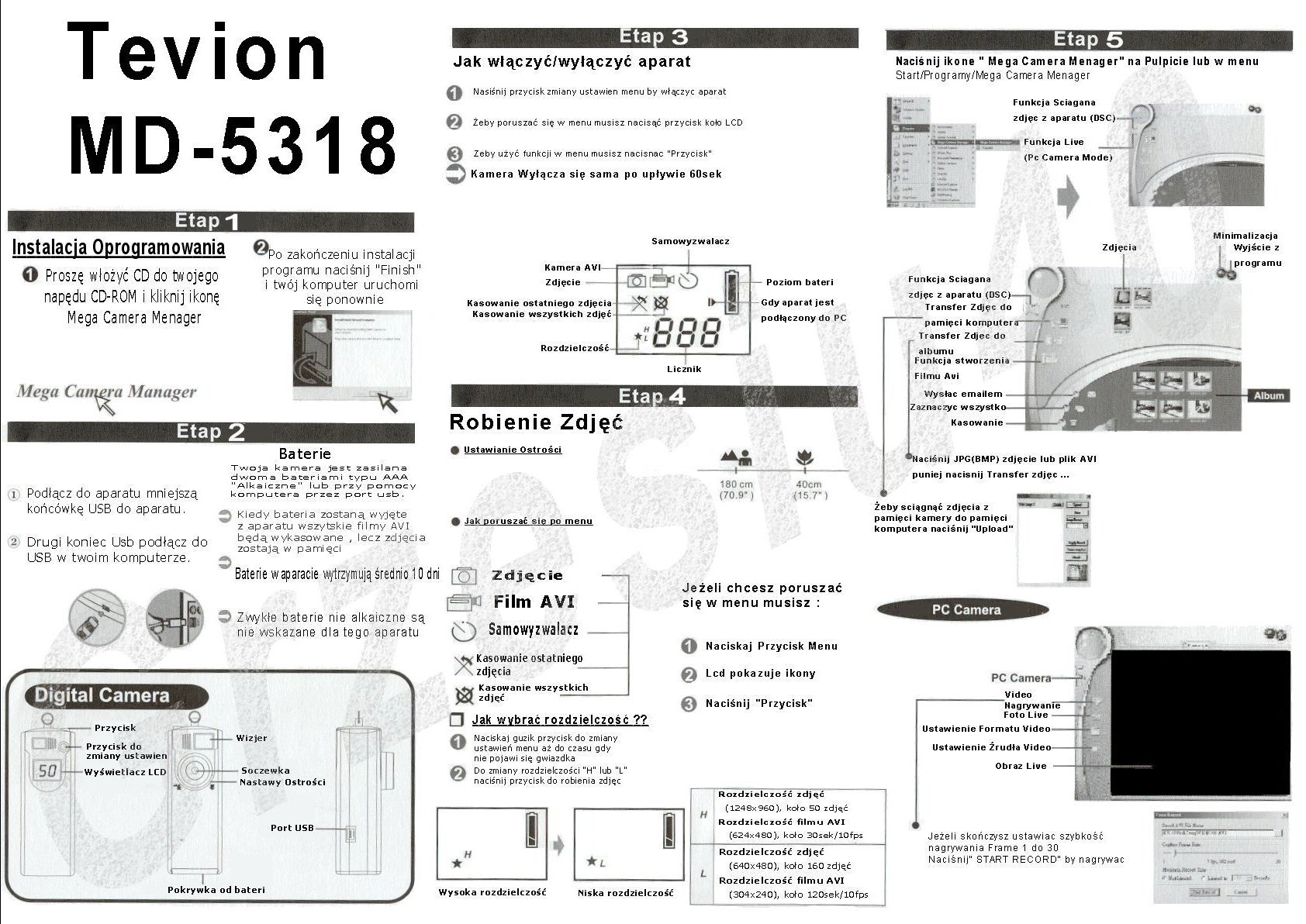 Szukam Sterowników i Instrukcji obsługi do Aparatu Cyfrowego „ Tevion MD 5319 „
