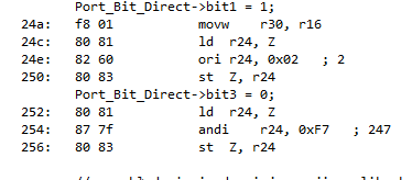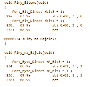 Potrzebuję umieścić zmienne na portach GPIORx , aby móc wymusić / usilnie domagać się, od kompilatora wykorzystania znanych instrukcji szybkiego dostępu bitowego do rejestrów o adresach poniżej 0x20.