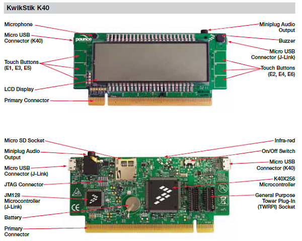 Kinetis K40X256VLQ100 (144LQFP) MCU wyposażonym w ekran LCD, USB, dotykowe przyciski.