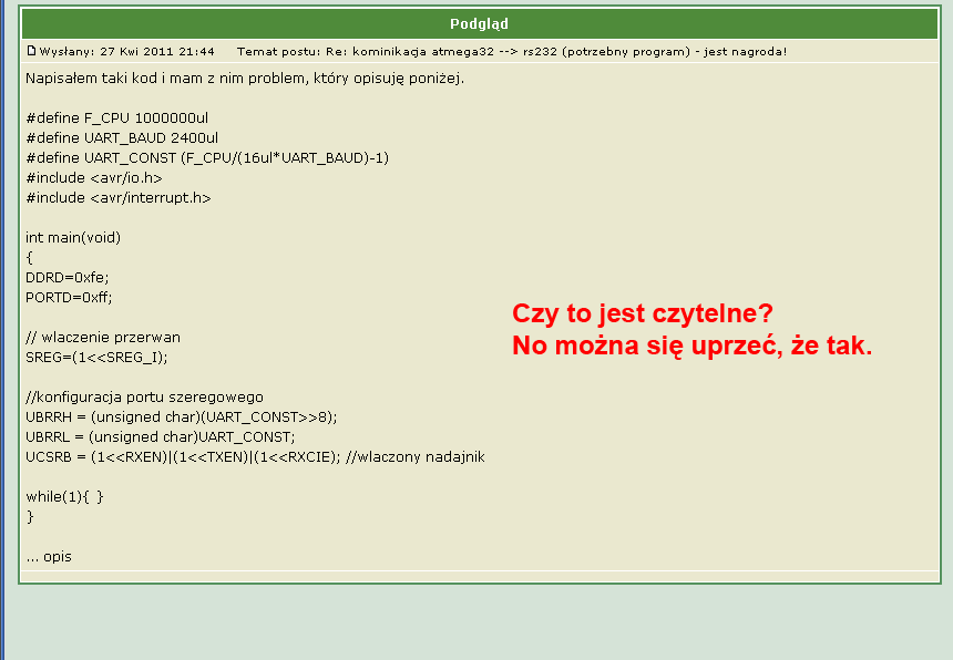 Moderowany przez dondu:Ponieważ jesteś nowy, to pomogę Ci ze znacznikiem SYNTAX, o którego użycie Ciebie prosiłem - kliknij na grafikę: