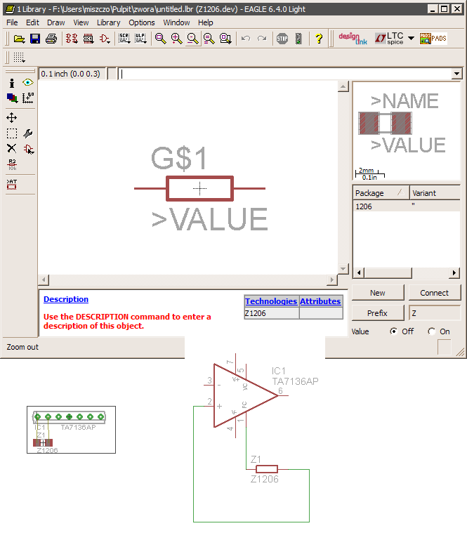 próbuję wykonać element 0R (czyli zworkę) w obudowie SMD, np. 1206. Niby wszystko jest ok, ale kiedy wykonuję układ PCB mam problem z poprowadzeniem ścieżek do obu wyprowadzeń elementu. Potem w warstwie unrouted mam w tym miejscu zaznaczony brak połączenia. Jest to o tyle dzowne, że np. taki element 0R/10 z biblioteki jumper pozwala normalnie prowadzić ścieżki. Może Koledzy porzucą, który parametr na etapie tworzenia elementu (symbolu) jest tu znaczący. Pozdrawiam.