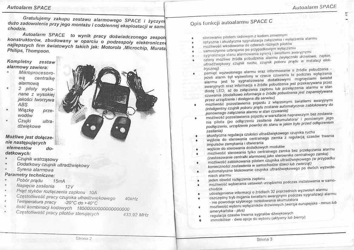 Witam Poszukuje opisu wyprowadzeń z płytki autoalarmu SPACE