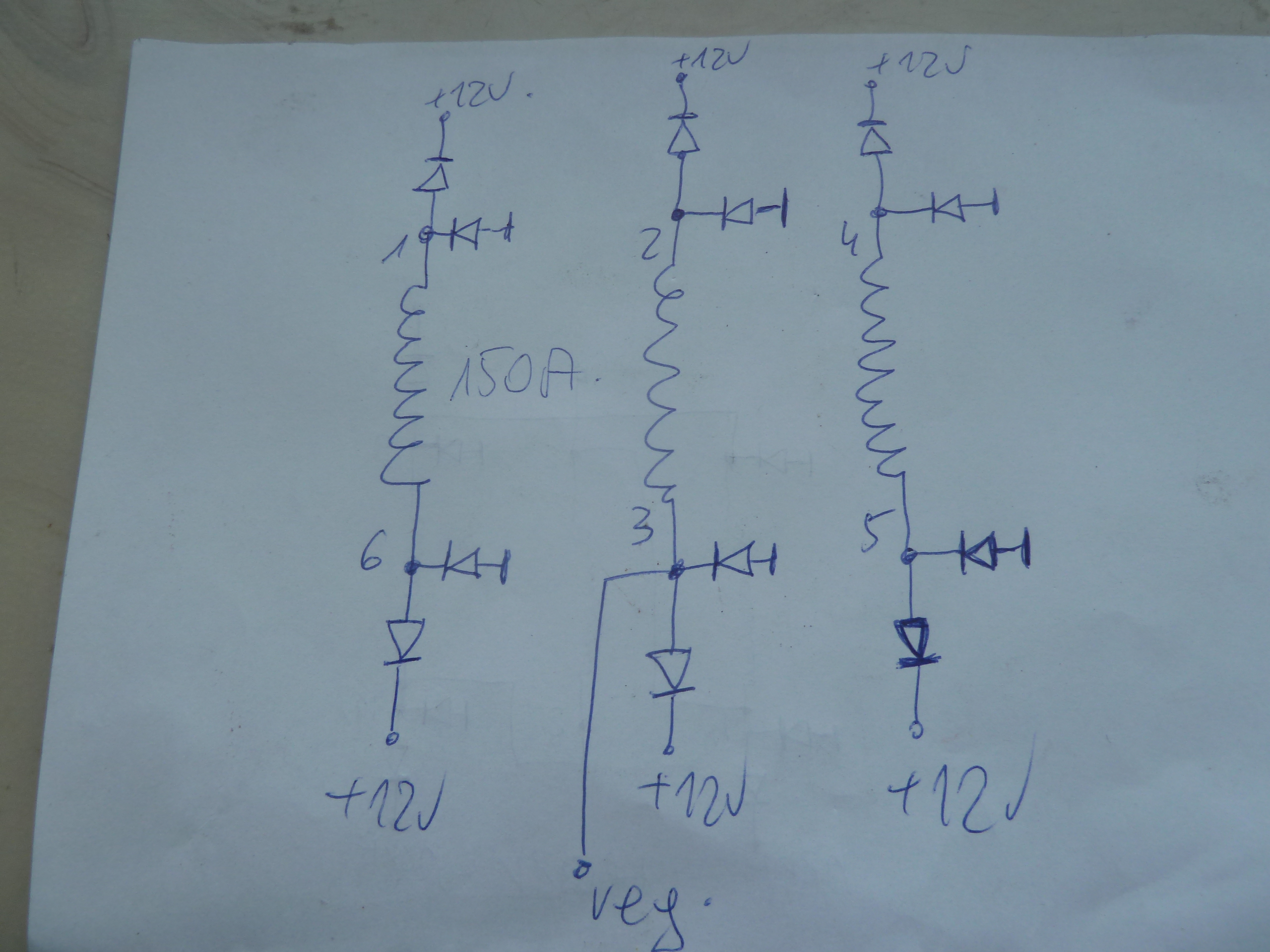 W wersji 120A jest 7 diod a w wersji 150A jest 12 diod i trochę inny układ połączeń.