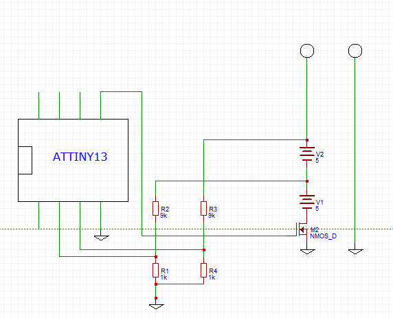 Chciałem zaprogramować moje ATtiny13A, żeby mierzyło napięcie na dwóch akumulatorkach Li-ion. Jeśli napięcie na którymś z nich spadnie poniżej 3.20V to ma procesor ma wyłączyć MOSFET-a. Problem w tym, że nie wiem jak podłączyć kontroler do akumulatorka każdego z osobna, bo w serii napięcia mierzyć się nie da, bo jest razem więcej niż 5 V. Jak podłącze Analog input do minusa którejś z baterii to wtedy kontroler się spali....