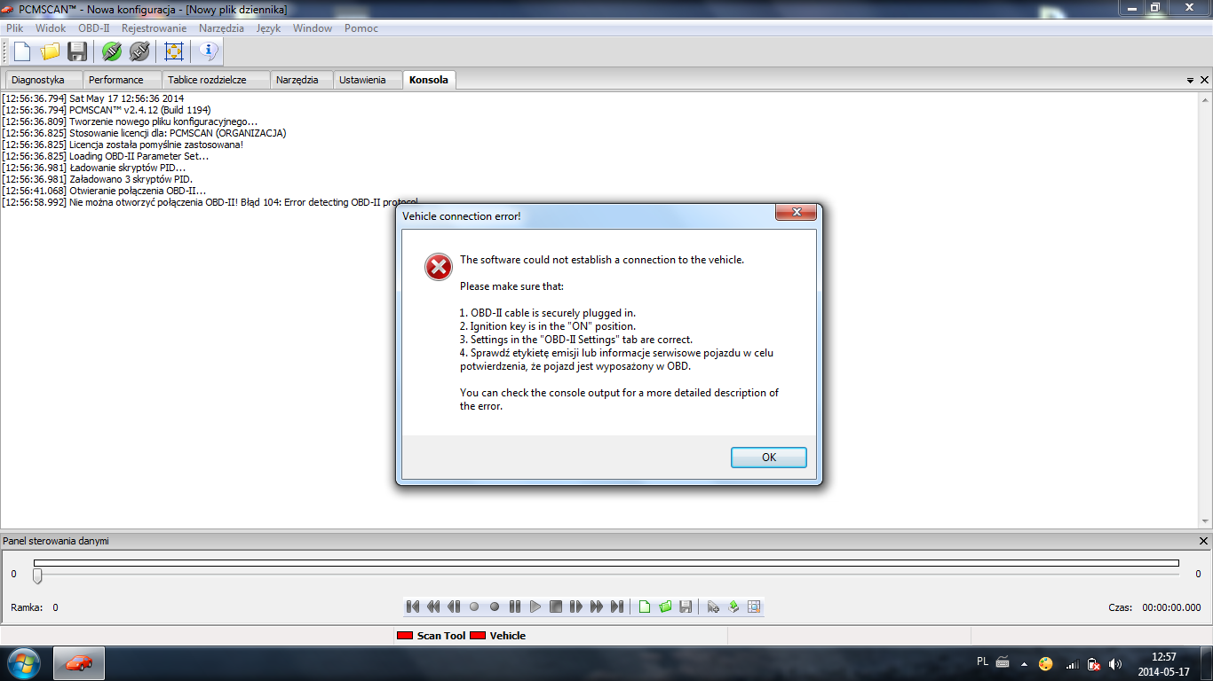 Mam problem z połączeniem się do auta, próbowałem na vectra c 2004 diesel, focus 2003 diesel, corsa 2001 benzyna. (Każdy posiada certyfikat OBDII)