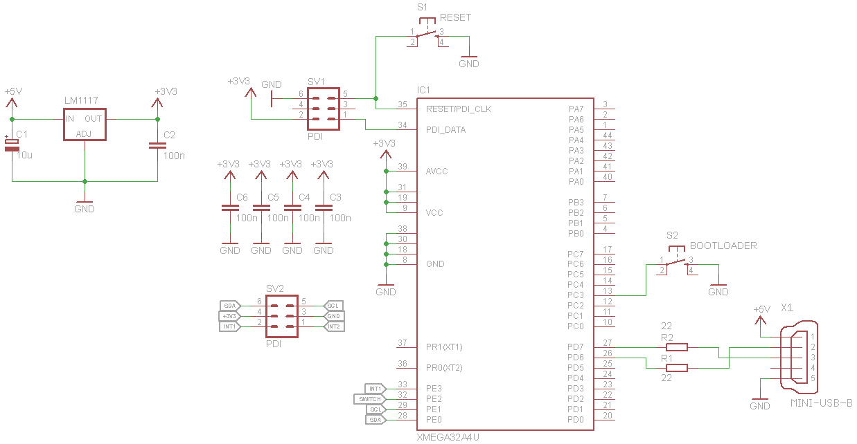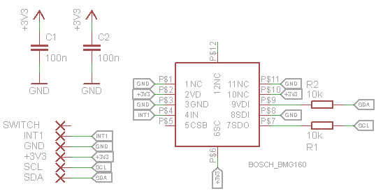 Tworzę projekt urządzenia wskazującego opartego na żyroskopie Bosch BMG160 i XMega32a4u. Wykorzystuję interfejs I2C do komunikacji. Odebrane dane z żyroskopu są przekształcane na ruchy kursora. Komunikacja z PC za pomocą sprzętowego USB. Cały projekt tworzę korzystając z frameworku Atmela ASF w Atmel Studio 6.2. Mam taki problem, że przy próbie odczytu/zapisu z żyroskopu zawiesza się mikroprocesor. Stwierdzam to po braku reakcji na naciśnięcie przycisku odpowiadającego za lewy przycisk myszy. Inicjalizacja modułu TWI przechodzi bez problemu jeśli żyroskop jest podłączony. Jeśli odłączę wówczas się nie wykona. Linie SDA i SCL są podciągnięte do zasilania przez rezystory 10k. Poniżej zamieszczam kod i schemat elektryczny. Cały projekt w załączniku.