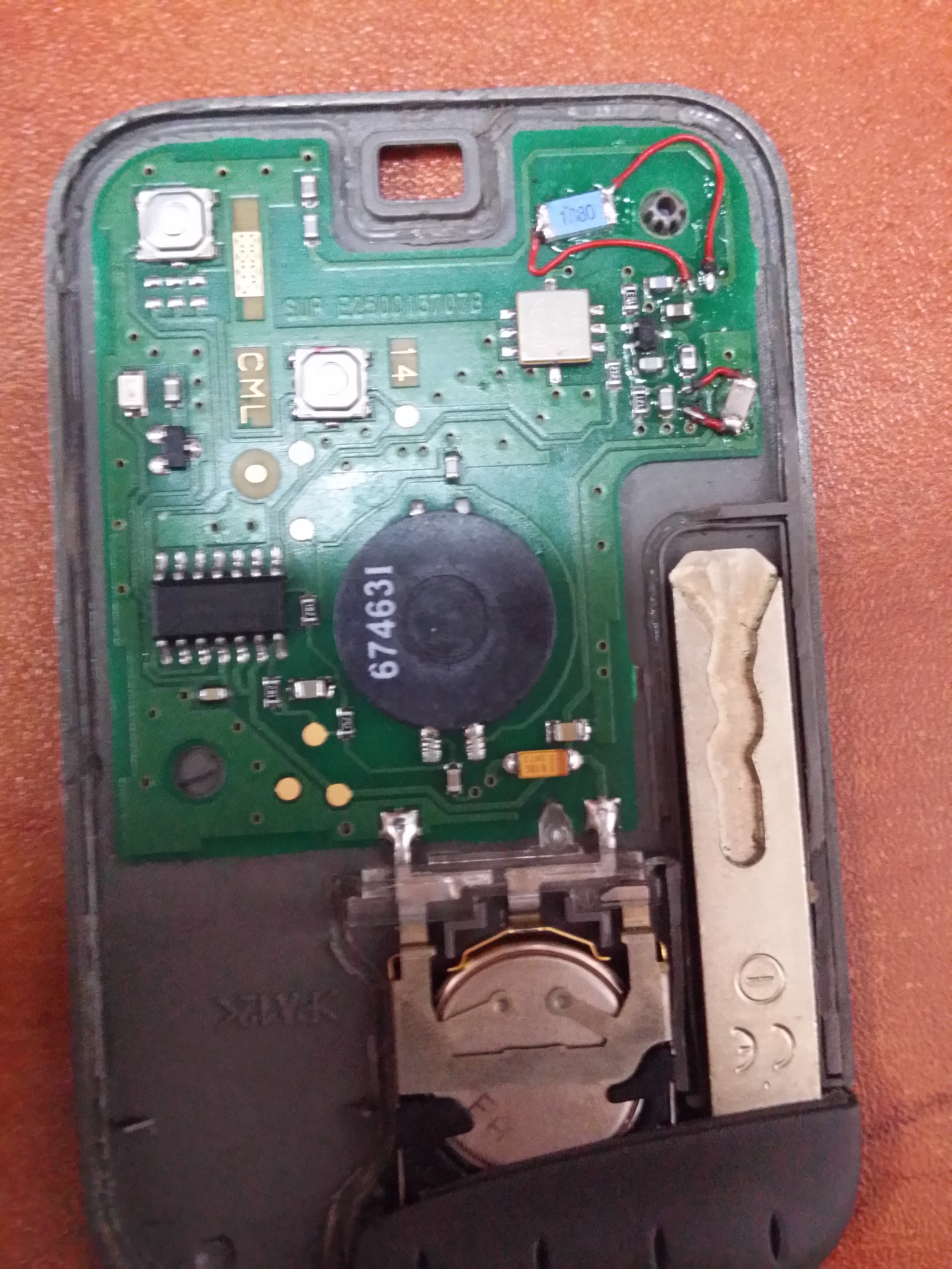 Witam, Szanowni forumowicze wpadła mi w ręce niedziałająca karta do samochodu Renualt Laguna II. Karta oprócz braku elementów zaznaczonych na zdjęciu, miła urwane przyciski. Marny ze mnie elektronik, ale lutować potrafię