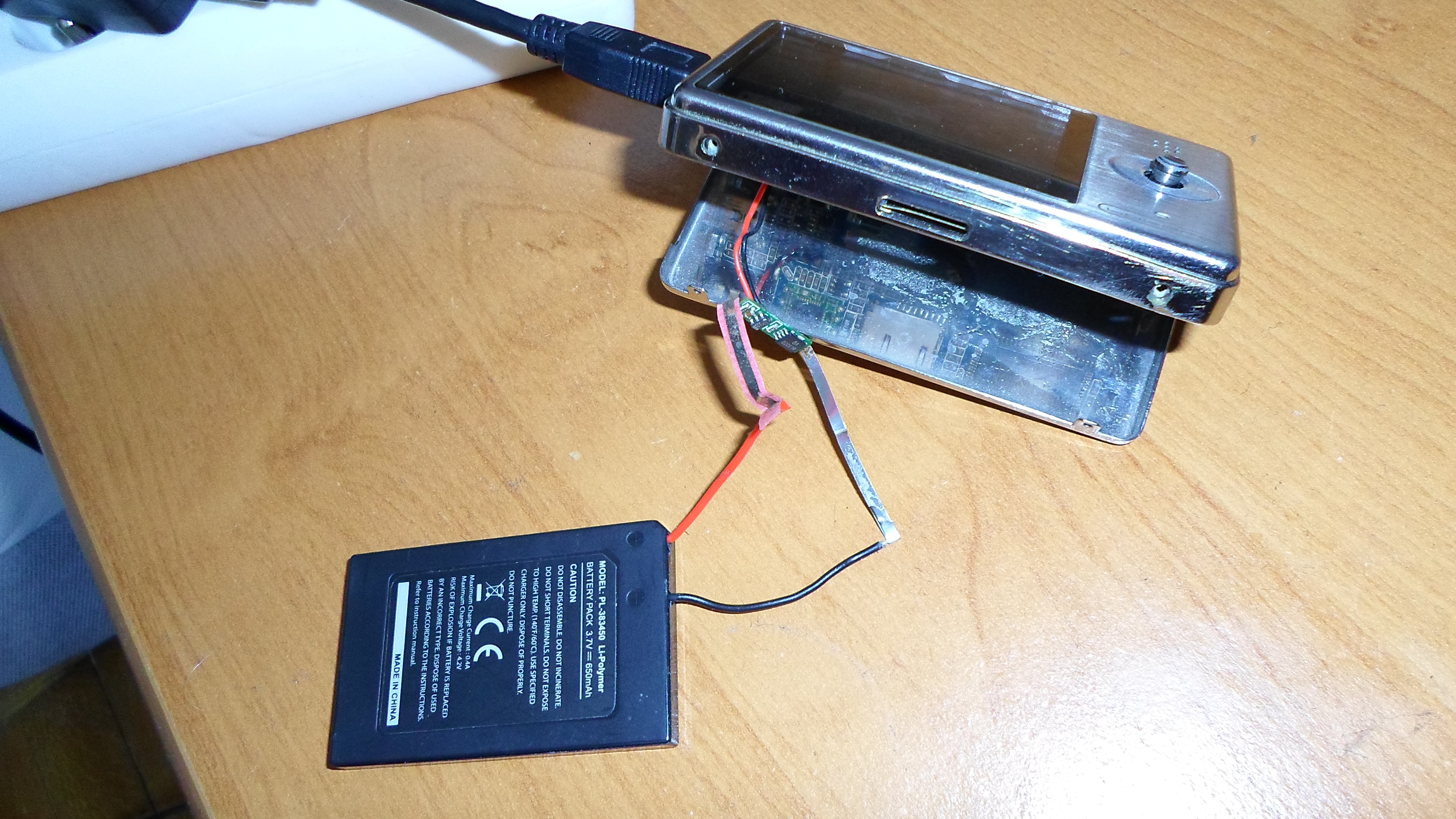 Posiadam inną, starą baterię o takich samych parametrach w dobrym stanie i postanowiłem ja wymienić. Zadziała to OK, nie zadziała to z MP4 zostanie duży 2GB pendrive z kabelkiem.