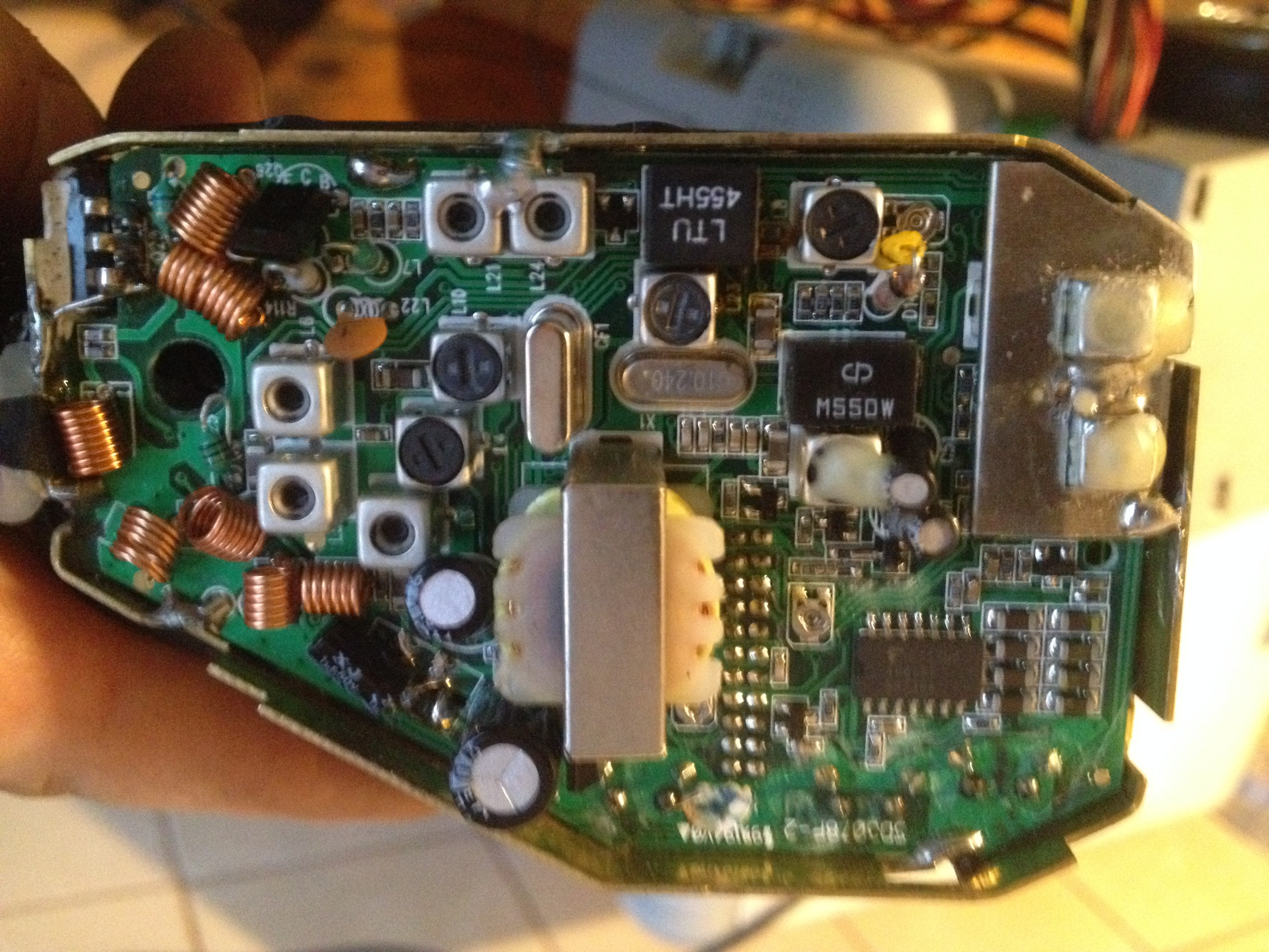 Brak szumów, czy jakiegokolwiek odgłosu z głośnika. Z tego co wiem, to podczas naciskania guzików ustawień wydobywa się kliknięcie (odgłos wciśnięcia jakiegokolwiek guziczka), u mnie cisza. Tylko podczas włączenia cb potencjometrem da się usłyszeć jakby dźwięk "podłączenia napięcia do głośnika". Jak nadaję przez to radio, to słychać mnie w eterze innych cb. Tak więc nadawanie poprane. Wymieniłem TDA2003 lecz nic się nie zmieniło. Podczas przyciśnięciu przycisku nadawania tx wychyla się na maksa. Podczas odbioru rx stoi w miejscu, czasami podczas włączenia i wyłączenia radia na sekundę pokażą się trzy kreski i znikają. Radio jak otrzymałem już miała spalony bezpiecznik topikowy 10A. Podczas próby nadawania bardzo szybko i mocno grzeje si tranzystor końcowy w obudowie TO220. Pomoże ktoś mi je naprawić. Posłucham wszystkich rad.
