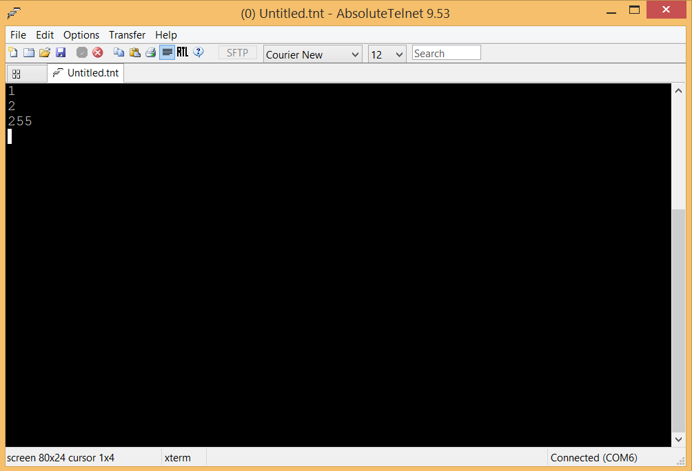 Na terminalu powinien być wynik: 1, 2, 3 a otrzymuję 1,2, 255.