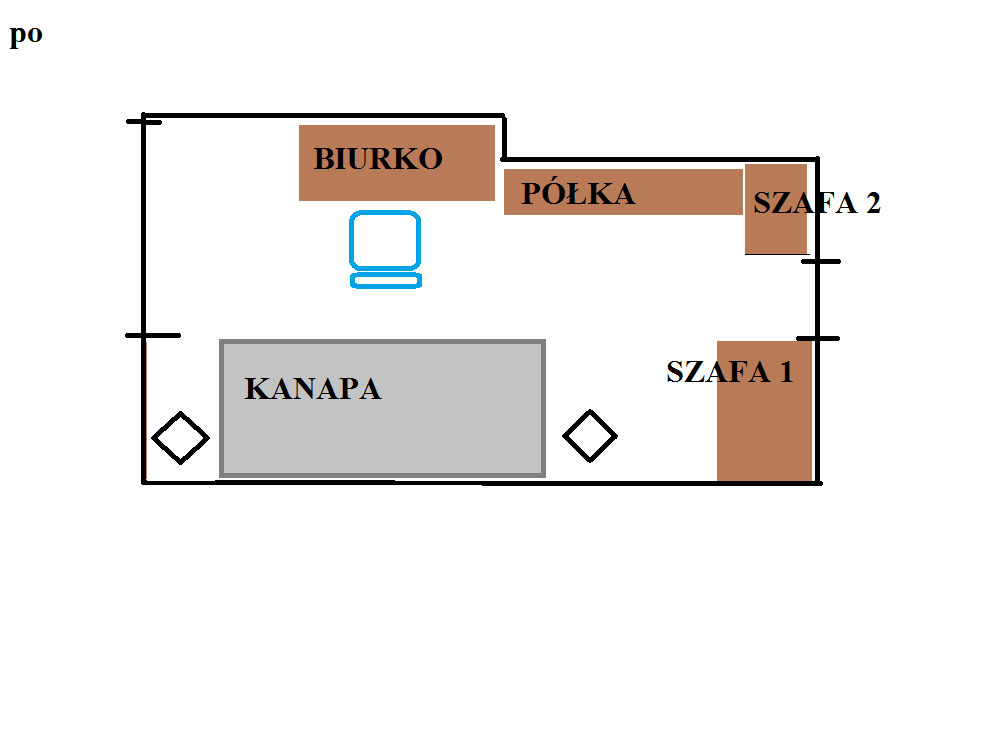 Witam serdecznie, posiadam dwie kolumny Microlab Solo 6c podpięte do komputera, stojące na autonomicznych stojakach (nie na jakimś innym sprzęcie). Brak miejsca w pokoju oraz niepraktyczność obecnego ustawienia mebli wymusza na mnie przemeblowanie. Wymiary pomieszczenia nie pozwalają po przemeblowaniu ustawić kolumn symetrycznie obok biurka. Wpadłem więc na pomysł, aby ustawić je z boku kanapy, którą mam za sobą, siedząc przy komputerze. Zrobię więc modyfikację, którą mogą zobrazować rysunki dostępne w załączniku (romby to kolumny).