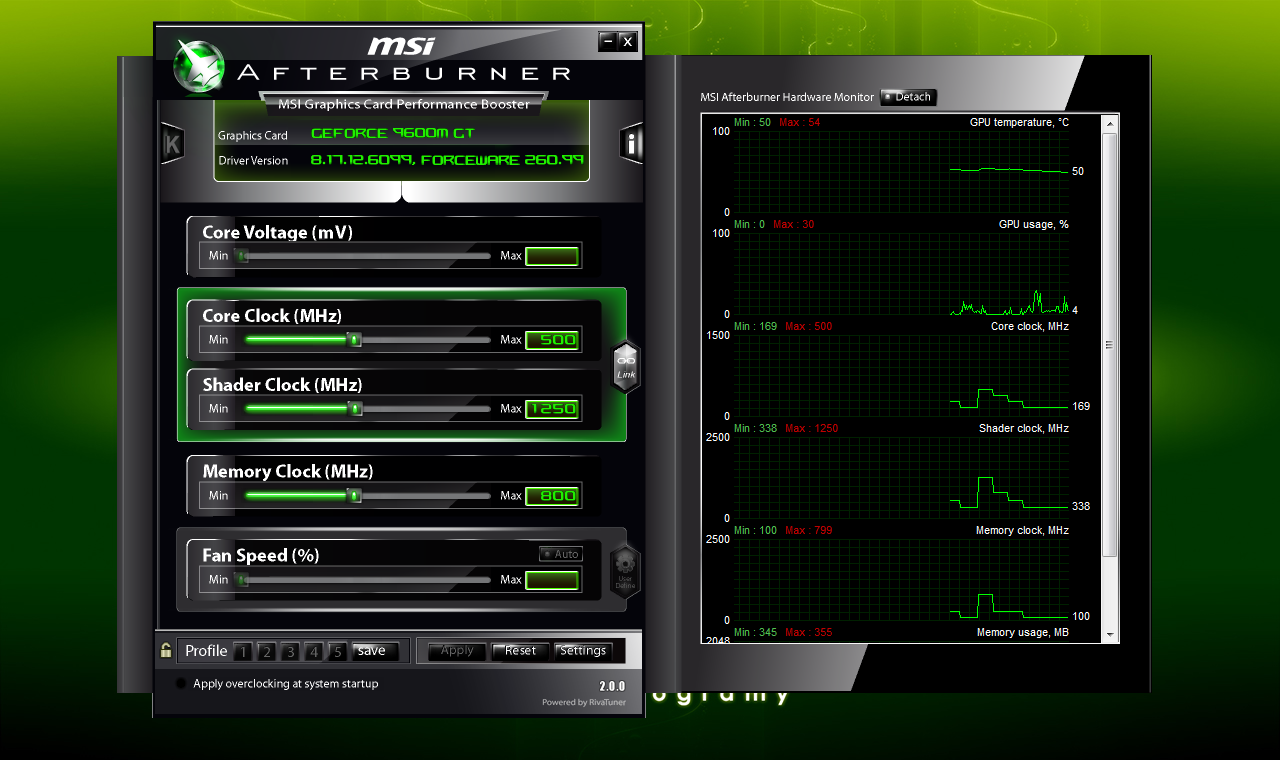 Chcę tylko posługiwać się pozycjami core clock,shader clock i memory clock w programie MSI Afterburner.