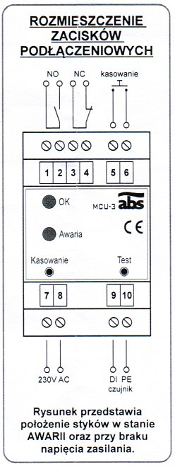 "W przypadku, gdy do pompy lub mieszadła dostanie się woda następuje przepływ prądu i przejście urządzenia w stan AWARII. Stan awarii równa się wyłączeniu urządzenia z cyklu pracy. Stan ten utrzymuje się do momentu przyciśnięcia przycisku KASOWANIE przez obsługę, po sprawdzeniu przyczyny takiego stanu. Na wyjściu czujnika podczas normalnej pracy występuje napięcie stałe 24V. W momencie przejścia urządzenia w stan AWARII napięcie to jest odłączone, aby zapobiec zjawisku elektrolizy. W celu kontroli poprawności działania urządzenia zastosowano dodatkowy przycisk TEST. Jego przyciśnięcie i przytrzymanie ok. 1 sek. powoduje wymuszenie stanu AWARII."