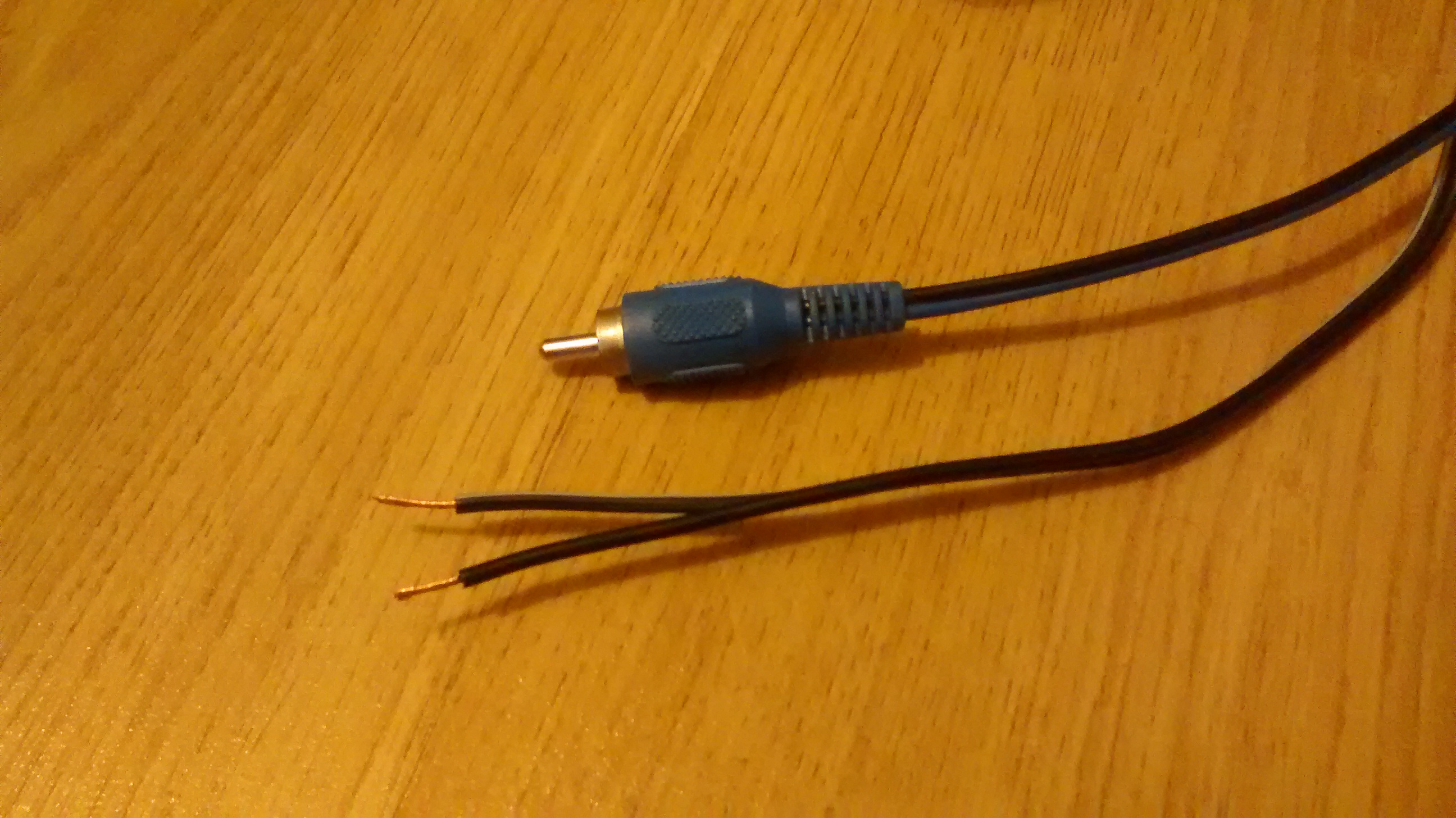 Z głośnika wychodzą dwa kable - jeden zakończony cinchem, a drugi niczym(rozgałęziony).