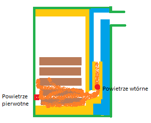 Czyli tak sobie myślę żeby wyspawać z blachy coś ala kominek właśnie wyłożony szamotem .Płaszcz wodny myślę zrobić nad paleniskiem ,tylko możesz mi to rozrysować albo jakoś pokazać z tym wylotem spalin w dolnym spalaniu ta szczelina?
