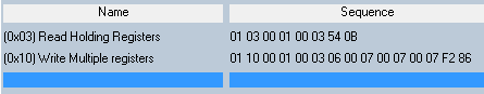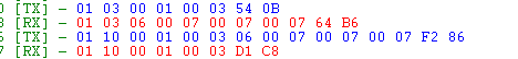Dane jakie wysyłam to 2 ramki MODBUS RTU: