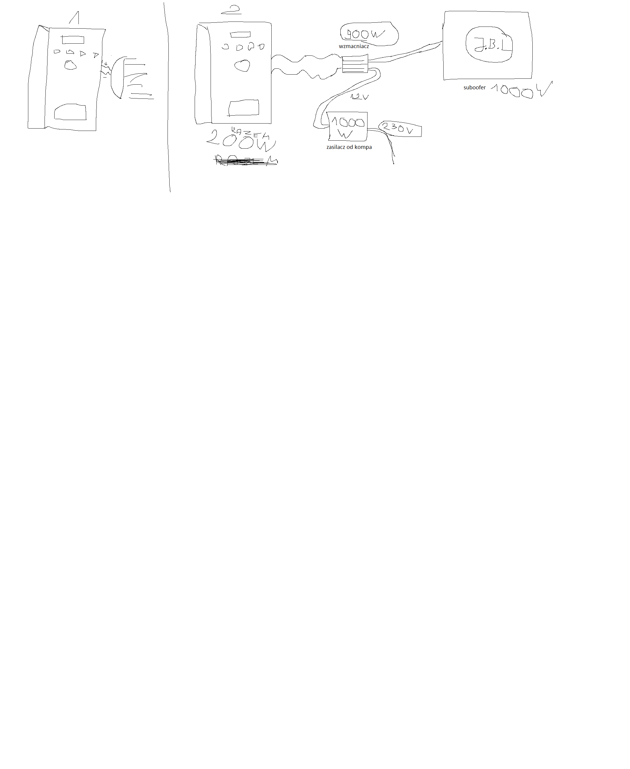 chciałem wywalić ten mały 100w sub który jest orginalnie w głośnikach i od tych kabli które po nim by zostały podłączyć wzmacniacz samochodowy a ze wzmacniacza do suba 1000w