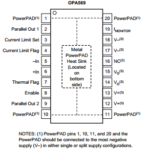 Obecny w wielu obudowach układów scalonych PowerPad™ jest fantastycznym dodatkiem umożliwiającym odprowadzanie mocy strat wzmacniaczom operacyjnym mocy i innym układom liniowym. Jest to szczególnie istotne w przypadku elementów w niewielkich obudowach, takich jak obudowy SO do montażu powierzchniowego. PowerPad™ zapewnia tor o niskim oporze cieplnym pozwalający na transferowanie nadmiaru ciepła z układu scalonego na zewnętrzny radiator lub na miedzianą wylewkę na płytce drukowanej (PCB), która zachowywać się będzie jak takowy. Karty katalogowe układów zazwyczaj specyfikują, jaki powinien być potencjał elektryczny tego odsłoniętego padu. Najczęściej jest to najbardziej ujemne napięcie występujące na elemencie. W przypadku systemów z pojedynczym napięciem zasilania jest to 0V, czyli masa, jednakże jeśli obecne są dwa napięcia zasilania przy zasilaniu symetrycznym, często musi być to napięcie ujemne (V-).