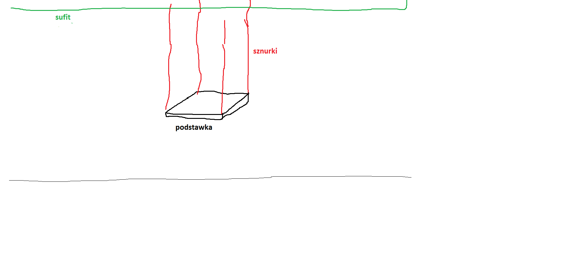Nie niszcz sufitu dla kiepskiego rozwiązania, kup w za parę złoty uchwyty do małych kolumn. Przykręcane do kolumny od spodu, lub od dołu, druga część ramienia do ściany, będzie stabilnie, może nawet można będzie regulować kąt.