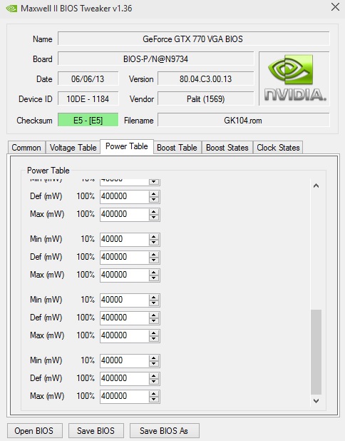 Chciałbym troszkę podnieść takty, ale co się okazuje nie ma to większego sensu, gdyż limit TDP i tak blokuje kartę.