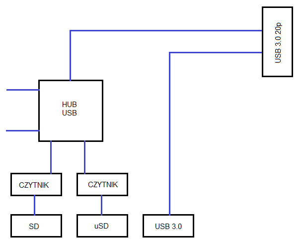 Jak widać chcę to zrobić z gotowych elementów. Huba i dwóch czytników microSD. Co do całej konstrukcji mam jak na razie dwa pytania