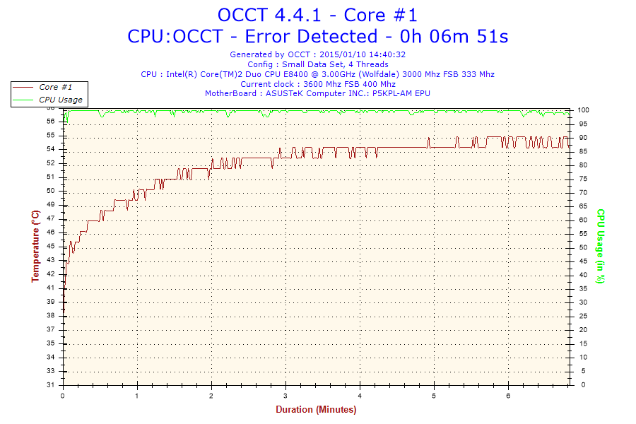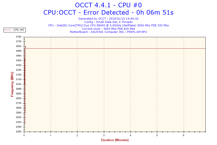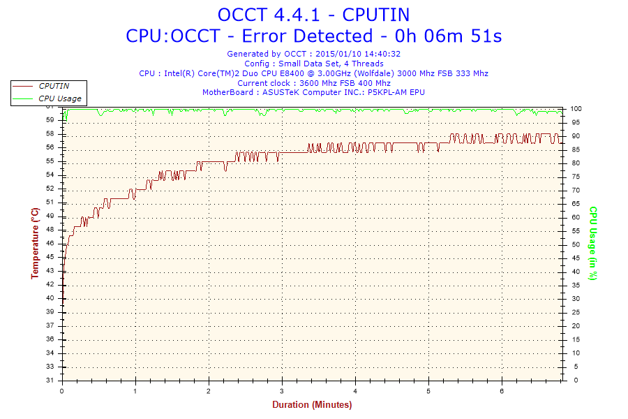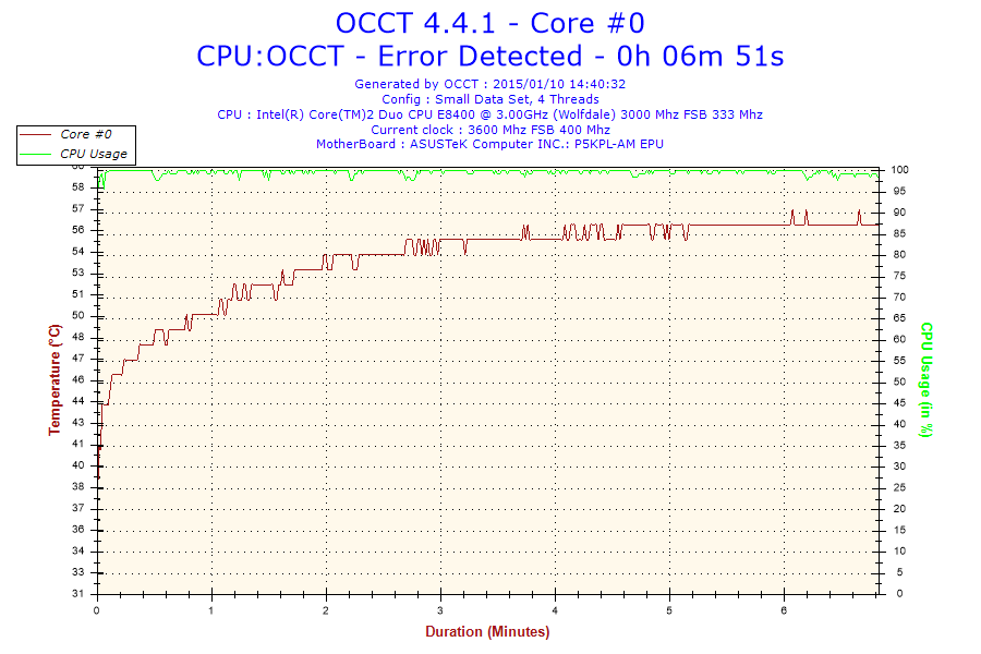 witam, na płycie głównej p5kpl am epu chciałem podkręcić procesor e8400 do 3.6ghz niby wszystko ok jest, tylko kiedy testuje programem occt to po kilku-kilkunastu minutach wyskakuje błąd rdzenia #3. i komputer sie wyłącza. temperatury też są raczej ok bo 57 stopni w stresie. ktoś pomoże?