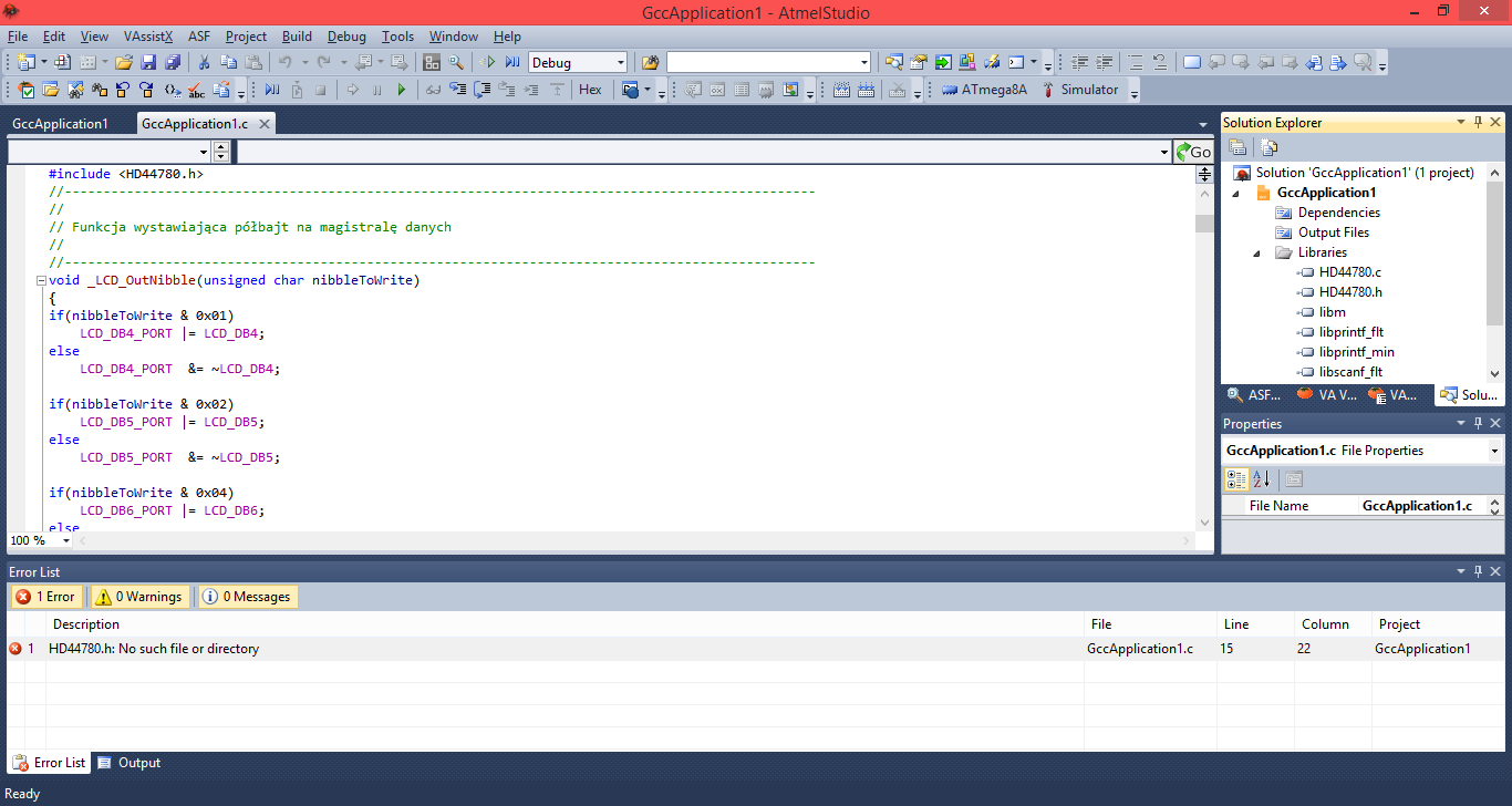 I właśnie w atmel studio 6 wyskakuje mi taki błąd przy probie kompilacji przykładowego programu z tej strony http://hobby.abxyz.bplaced.net/index.php?pid=4&aid=8 . Szukałem sporo o przyczynach ale próbowałem już wszystkiego i ten błąd wyskakuje dalej... Biblioteki dodane , optymalizacja zrobiona ,częstotliwość zdefiniowana według poradnika http://mikrokontrolery.blogspot.com/2011/04/atmel-studio-pelne-ide-avr-arm-cz1.html i dalej nic.