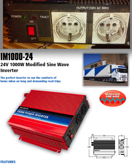 #4 14429940 11 Lut 2015 23:11 januszx3 januszx3 Poziom 31 Pomocny post? (0) #4 14429940 11 Lut 2015 23:11 Twoja przetwornica, przedstawiona na zdjęciach, jest modelem zbieżnym z australijską wersją przetwornicy: "Projecta IM1000-24 - 1000 Watt Modified Sine Wave Inverter 24V-240V" Porównywane modele różnią się gniazkami: " Typ I" - Australia ; "Typ F" - Europa Opisy układu elektronicznego przetwornicy "Projecta IM1000-24", są dostępne w internecie. Promuję tematy: 01.01.2022 Identyfikacja elementu 1M30AE w urządzeniu SolareEdge SE8K