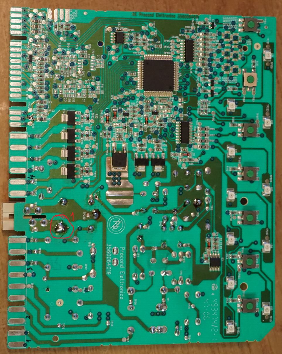 nie działa. Na płytce sterującej (Bosch DIWA200FL, PROCOND: 452657111 WK:10/07, D68248411, GE Procond Elettronica 3560064019)