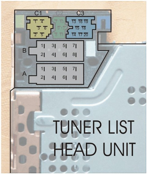 Jednak brakuje tu opisu styków dla kostki C1, którą to chcę podłączyć do radia (radio nie ma gniazda na taką kostkę, ma za to luźne, opisane przewody, które zapewne należy wetknąć w odpowiednie styki w kostce), tak więc jeśli ktoś z was ma resztę tego opisu lub wie który pin w tej kosteczce za co odpowiada, byłbym bardzo wam wdzięczny za podzielenie się tą wiedzą