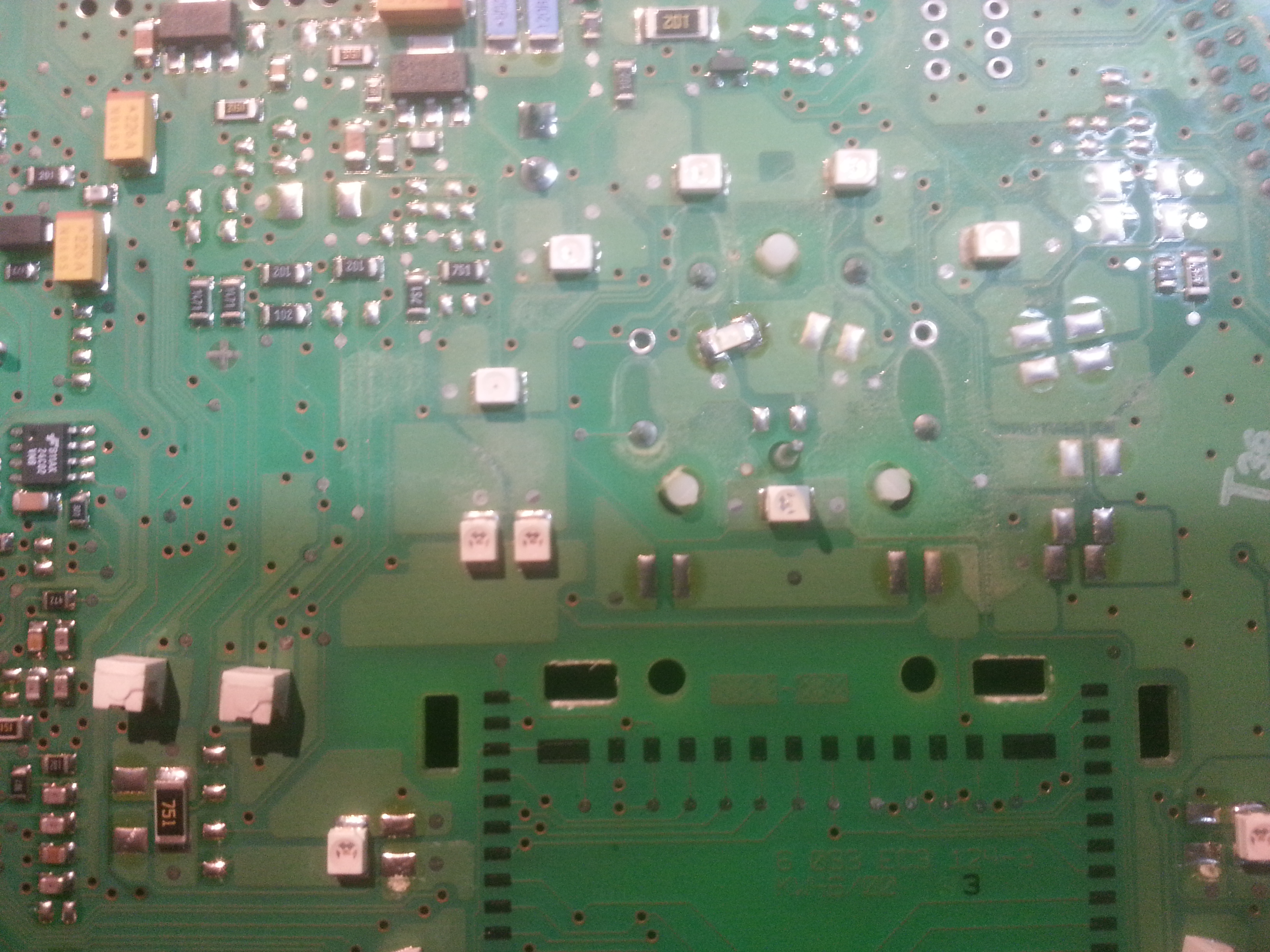 Witam, zamontowałem niedawno tempomat w moim samochodzie i mam pytanie czy jest możliwość aktywowania kontroli tempomatu na liczniku? W chwili obecnej udało mi się dołożyć brakujących diód LED od zapięcia pasów i otwarcia tylnej klapy tylko nie bardzo wiem które pole lutownicze na liczniku może być polem lutowniczym tempomatu. Ewentualnie mam kontrolkę kontroli trakcji której nie wykorzystuje.. z którego pinu układu mogę wyprowadzić sygnał kontrolki tempomatu? W liczniku zamontowane są układy BOSCH 30393 i NEC D780948GF-422. W załączeniu zdjęcia licznika.