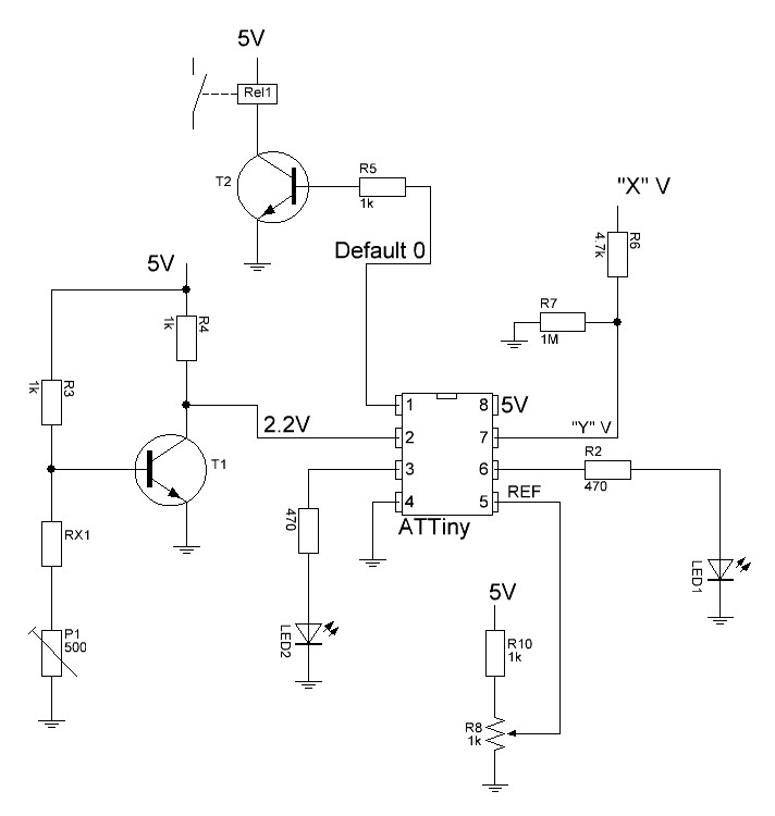 If the "Y" > REF -> LED1 ON -> PIN1 ON (relay on)